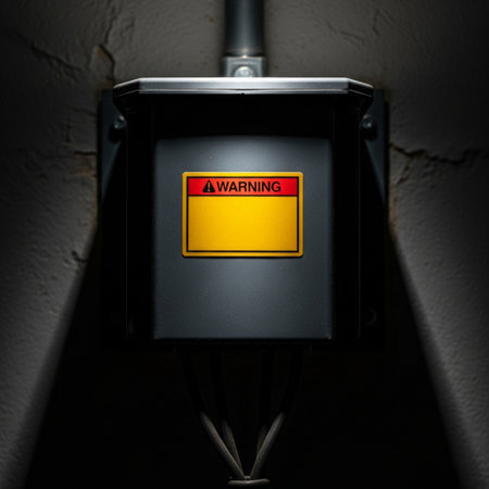 Electrical hazard warning sign in a metal box. Industrial safety concept.