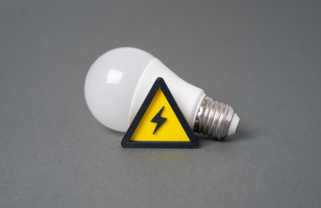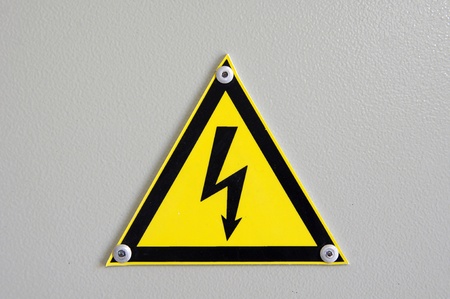 Electrical warning sign, detail of a caution sign on a metal wall