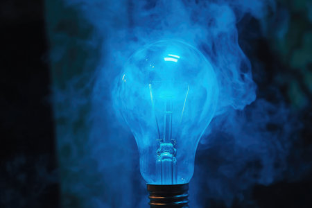 Illuminating Bright Blue Light Bulb Against a Black Background