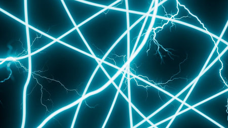A dynamic visualization of electric arcs, resembling neural activity, sparks with vibrant blue energy.
