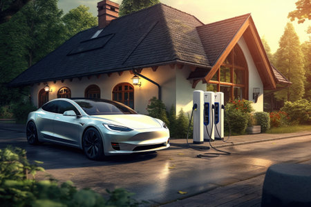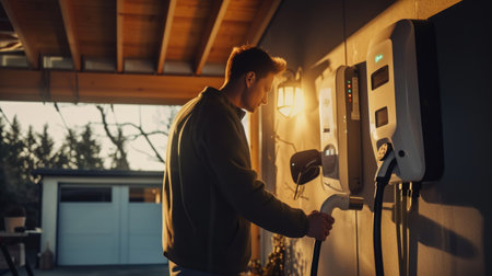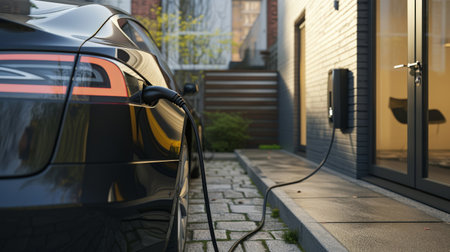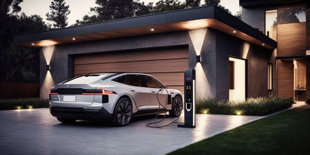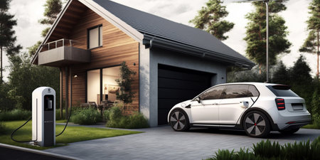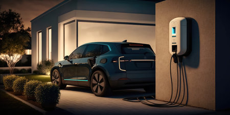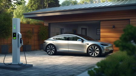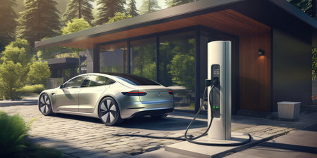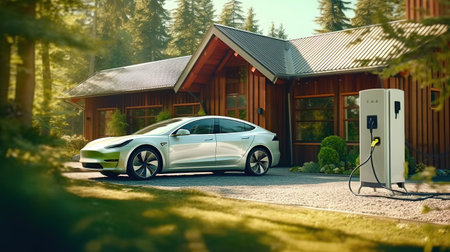 Electric Car Charging at Home with Clean Energy Technology. Generative AI