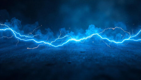 Lightning on a dark blue background with space for your text.