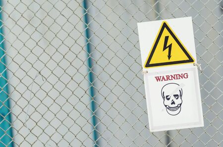 A warning sign about the danger of high voltage hardened in the fenced area, with copy space.