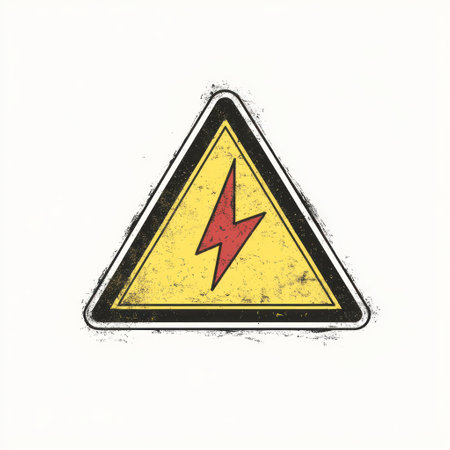 A warning sign with a red lightning bolt on a yellow triangle indicates an electrical hazard, alerting onlookers.