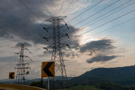 High current electrical towers near a road. Colombia