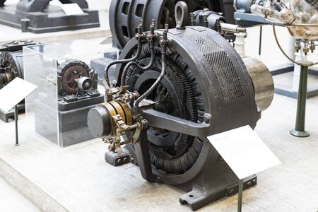 MUNICH, GERMANY - NOVEMBER 26, 2018: The German Museum of Science and tors. Technology Achievement represents the exposure of old mechanisms for the production of energy steam engines, windmills, electric