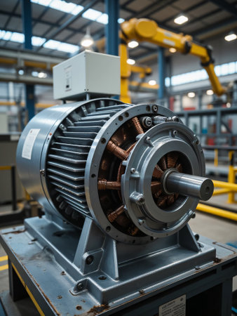 factory industry engineering technology motor electric industrial assembly work equipment. Generative AI.