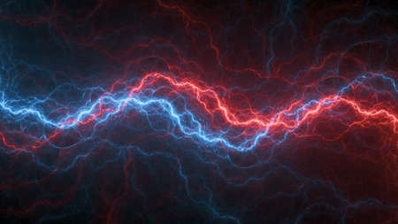 Dynamic Abstract Electrical Lightning Bolt Background Featuring Powerful Blue Energy Discharge, Glowing Network Connections, Luminous Plasma Sparks, and High-Tech Digital Connectivity Concept Art.