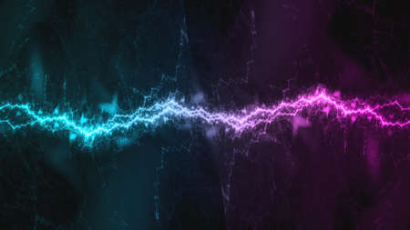 Colorful electric lightning in a dark abandoned building. Abstract background.