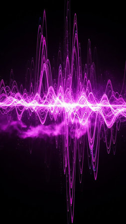 A bright, vibrant purple sound wave pulsates with energy, glowing intensely at its center against a dark background.