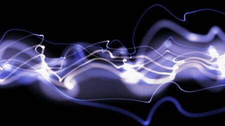 Abstract blue lightning on black background. 3D rendering. Futuristic technology style.