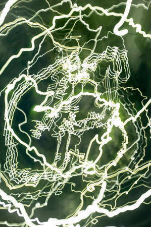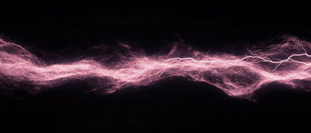 This abstract image captures electric currents creating glowing lines against a dark background, showcasing vibrant reflections and dynamic energy patterns.