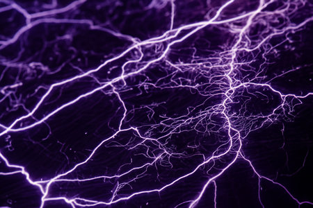 This captivating image features a dynamic abstract representation of electric purple lightning bolts, illustrating energy flow against a dark backdrop, perfect for creative projects.