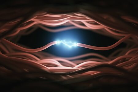 Blue lightning on dark background, computer generated abstract background, 3D rendering