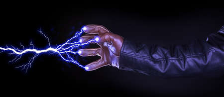 Hand shooting out a bolt of lightning - Dark and mysterious, isolated on black