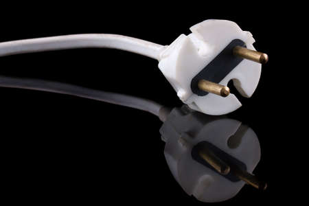 Electrical system plug and cable. Accessories for powering electrical devices. Dark background.
