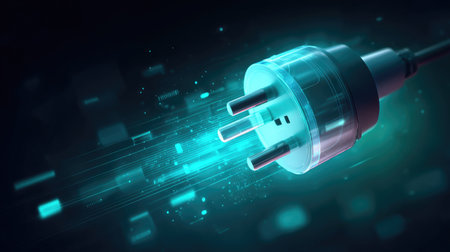 A captivating image of an electric plug surrounded by glowing digital elements, symbolizing connection and energy flow in a modern world.