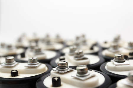 Collection Electrolytic capacitor with two black Clem plus and minus. Isolated on white background