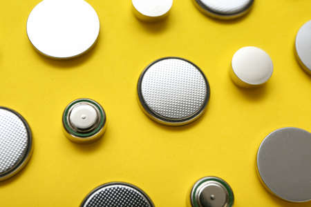 Used batteries-danger to the environment Horizontal shot. Multicolored used electric batteries view from above.