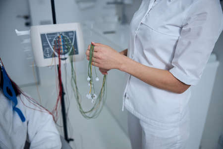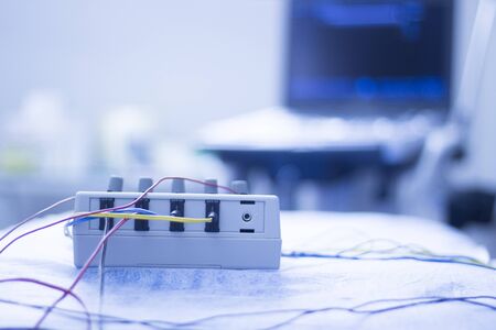 Modern encephalograph in clinic. EEG or Electroencephalography hardware equipment, close up