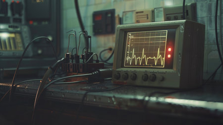 Classic Medical Monitor Displaying Complex Physiological Waveforms. Historical Healthcare Technology and Patient Observation.