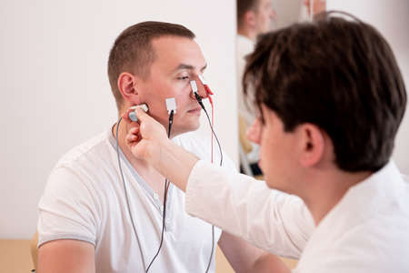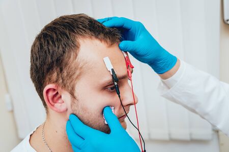 Doctor and patient with encephalography electrode. Electroencephalogram