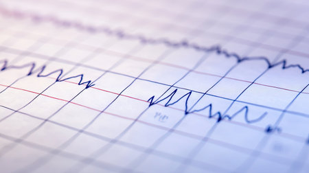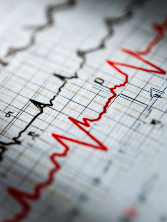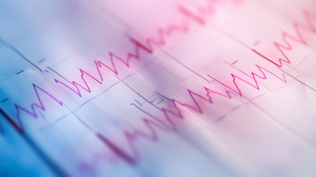 Close-up of an ecg printout showcasing irregular heart rhythms linked to cardiomyopathy. the intricate lines and patterns illustrate the electrical activity of the heart, serving as an essential tool for cardiologists and medical professionals.