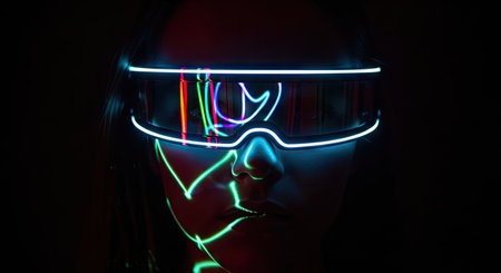 portrait of futuristic african american woman in neon lighting