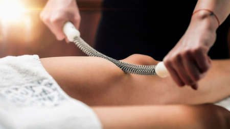 Body massage - young woman client getting anti-cellulite massage on her thighs and butt