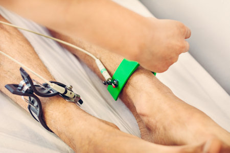 Patient nerves testing using electromyography. Medical examination. EMG