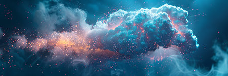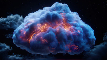 A glowing cloud made of digital particles, symbolizing cloud technology