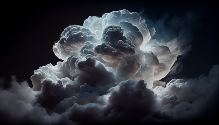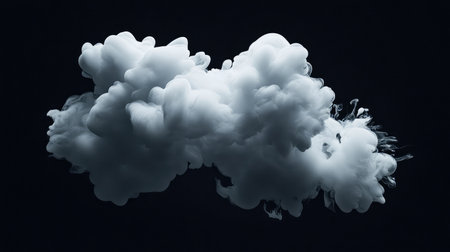 Captivating white cloud formation floats gracefully against a stark dark background, showcasing the intricate interplay of light and shadow in a stunning visual display.