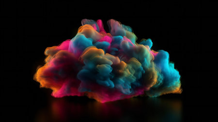 A vibrant smoke cloud against a dark backdrop. Created with Generative AI technology