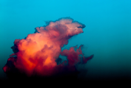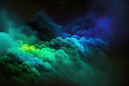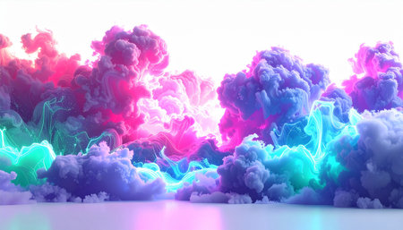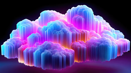 Vibrant neon cloud formation against dark background with dramatic lighting.