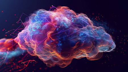 An abstract visualization of cloud computing, with digital elements representing data processing and AI operations in the cloud.