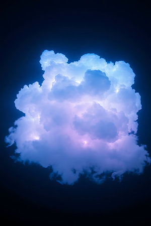 A stunning, dramatic cloud formation glows with vibrant blues and purples against the dark night sky. Evokes a sense of wonder and peace. Ideal for design, backgrounds, and atmospheric visuals.