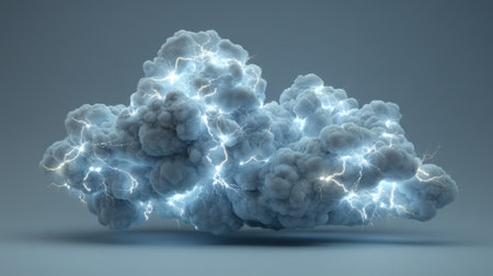 3D render of a cloud with lightning in the dark space.