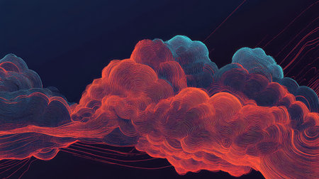 A stunning abstract digital cloud illustration showcasing a mesmerizing blend of glowing lines and blue hues, symbolizing technology and innovation against a dark backdrop.