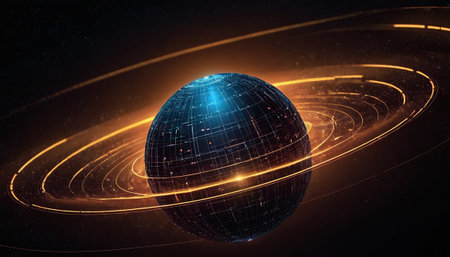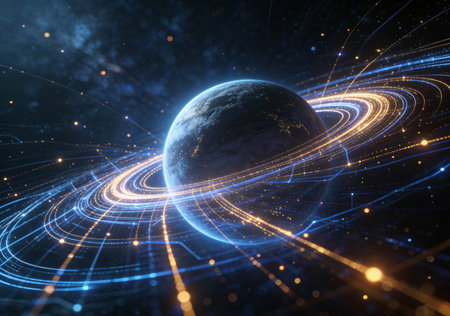 AI system managing a planetary system for order and efficiency. Concept Planetary Management, AI System, Efficiency, Order, Automation