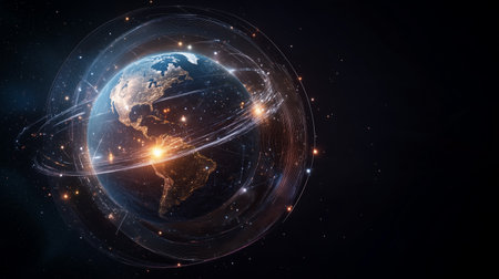 Earth in a digital network, a connected world of the future. Space for text