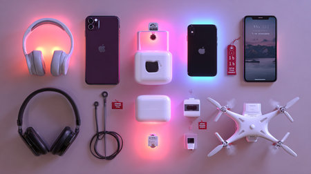 Background featuring a range of futuristic gadgets AI generated