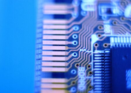 Electronic circuit board abstract background. computer hardware. motherboard close up. modern technologies. micro elements of computer with connections and traces. Intelligent technology