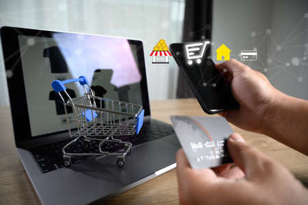 Online payment concept with tablet mobile cart and card