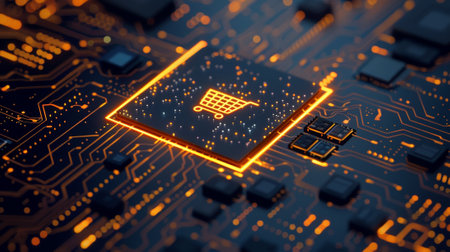 A computer chip with a shopping cart on it
