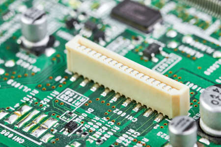 Close-up of computer connector on a part of electronic printed circuit board