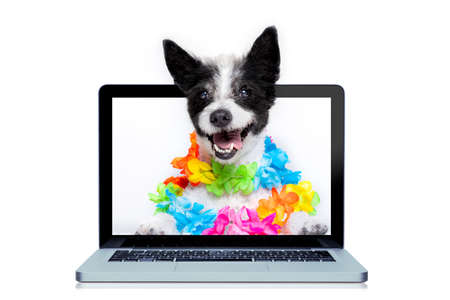 Online pet psychology, veterinarian service on-demand and animal care. web video conference call with vet doctor. pet sit down at the computer