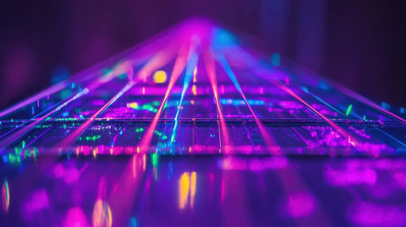 Abstract Neon Laser Light Show Purple Pink Blue Vibrant Energy Glowing Rays Futuristic Digital Art