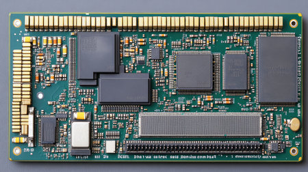 hi tech close-up of electronics circuit board or motherboard