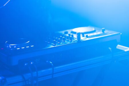 professional DJ mixer controller at a concert in a nightclub