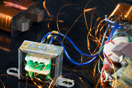 Electrical equipment. Electricity cables, wires and insulation. Background and texture